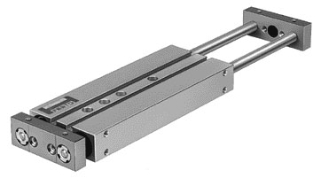 Bei diesem Twin-Zylinder sind zwei Kolben mit durchgehenden Kolbenstangen nebeneinander angeordnet und mit einem doppelten Joch gekoppelt. Diese Kombination hat eine hohe Verdrehsicherheit beim Positionieren und Transportieren von Werkzeugen und Bauteilen. Außerdem bietet das Doppelkolbenprinzip die doppelte Kraft bei gleicher Bauhöhe gegenüber Standardzylindern.