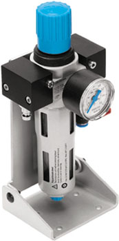 Die Wartungseinheit besteht aus einem Druckluftfilter mit Wasserabscheider und einem Druckregelventil.