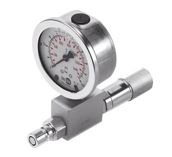 Das Differenzdruckmessgerät zeigt den Differenzdruck der anliegenden Drücke am linken und rechten Anschluss an.