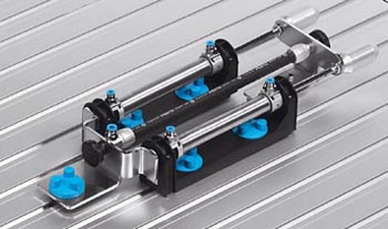 Fluidic muscle can be guided by coupling it mechanically with a double-acting cylinder. It is also possible to apply a load to the muscle via the cylinder.
